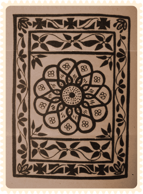 Using their imagination, the artists draw a range of patterns, which may consist of a mix of hollow and solid geometric shapes, floral designs, paisleys, symbolic representation of animals and other objects, etc.